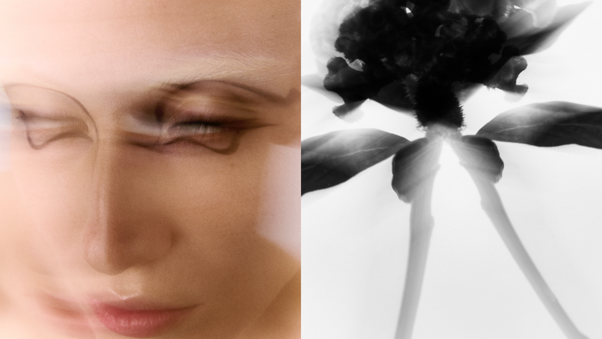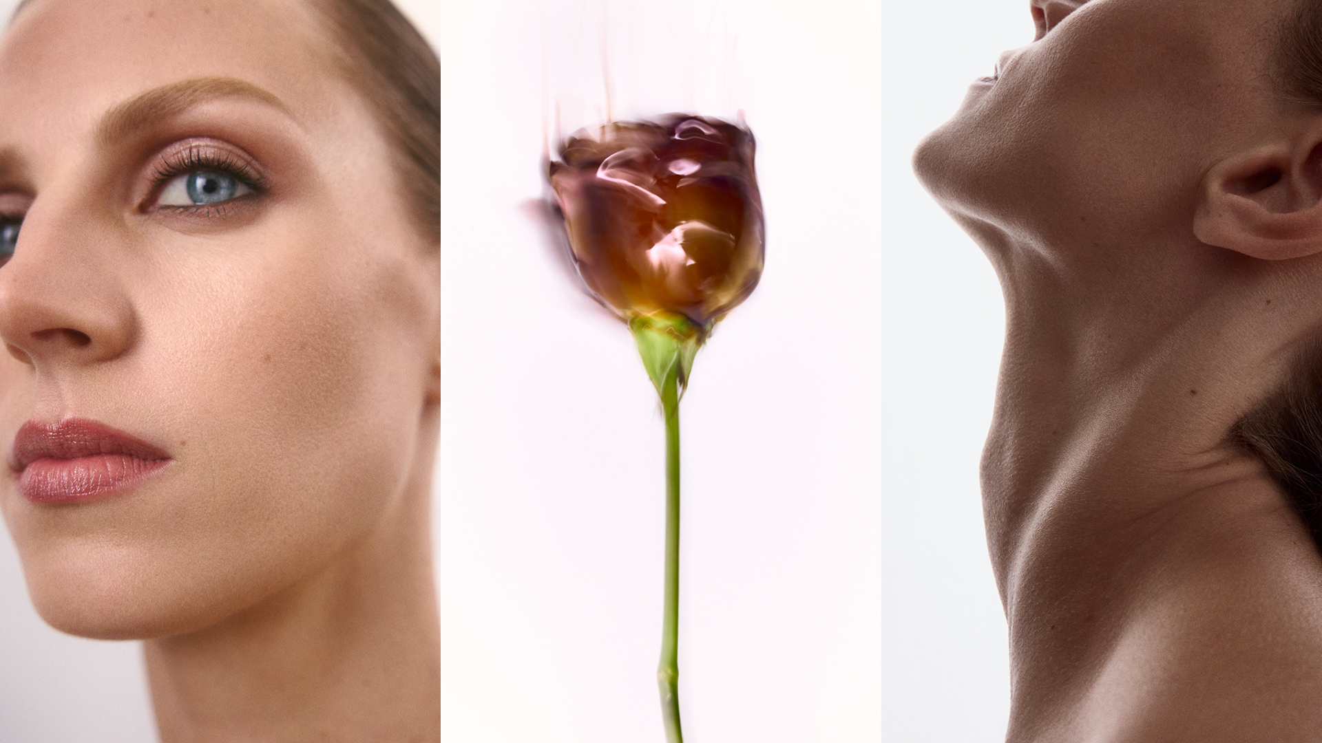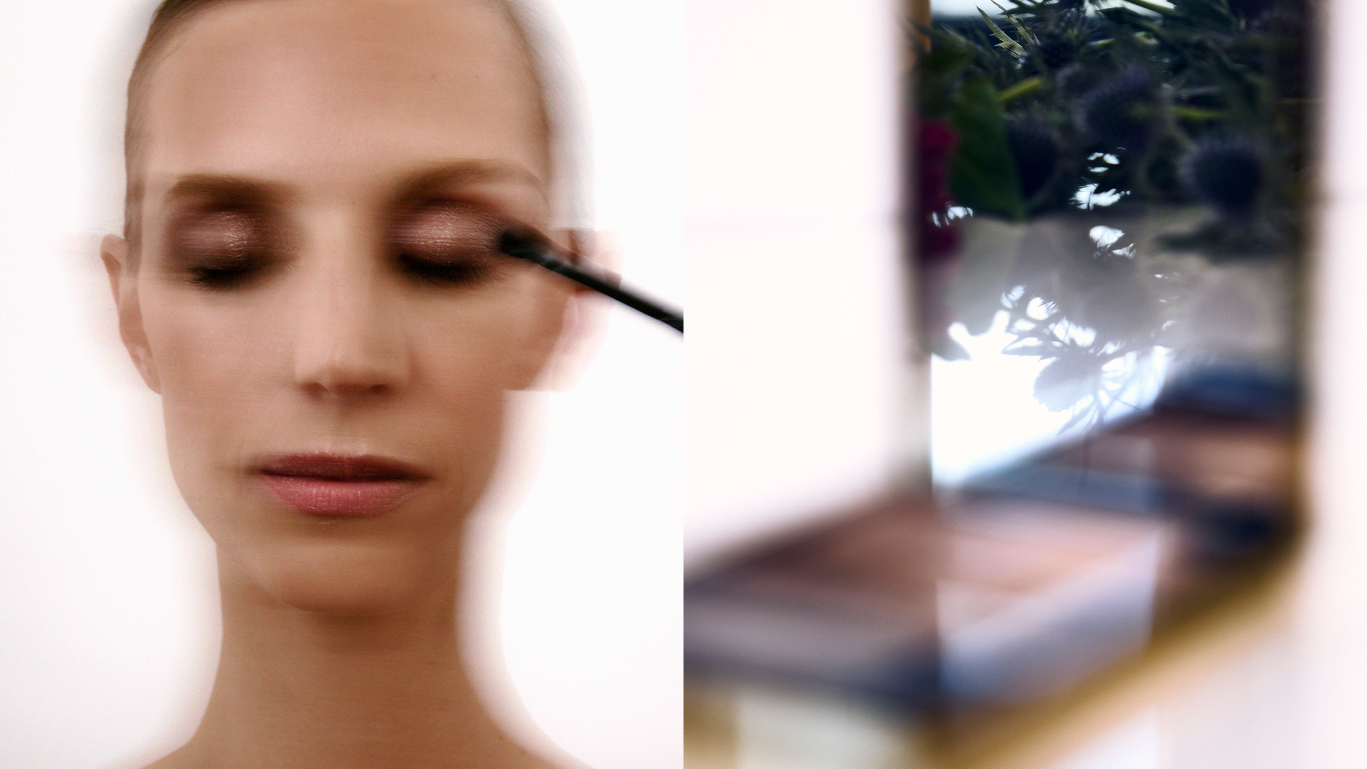 Fragments of gloss and dust. Petals dissolving into skin. A language of surfaces, fractured, fleeting – beauty undone, then reborn.