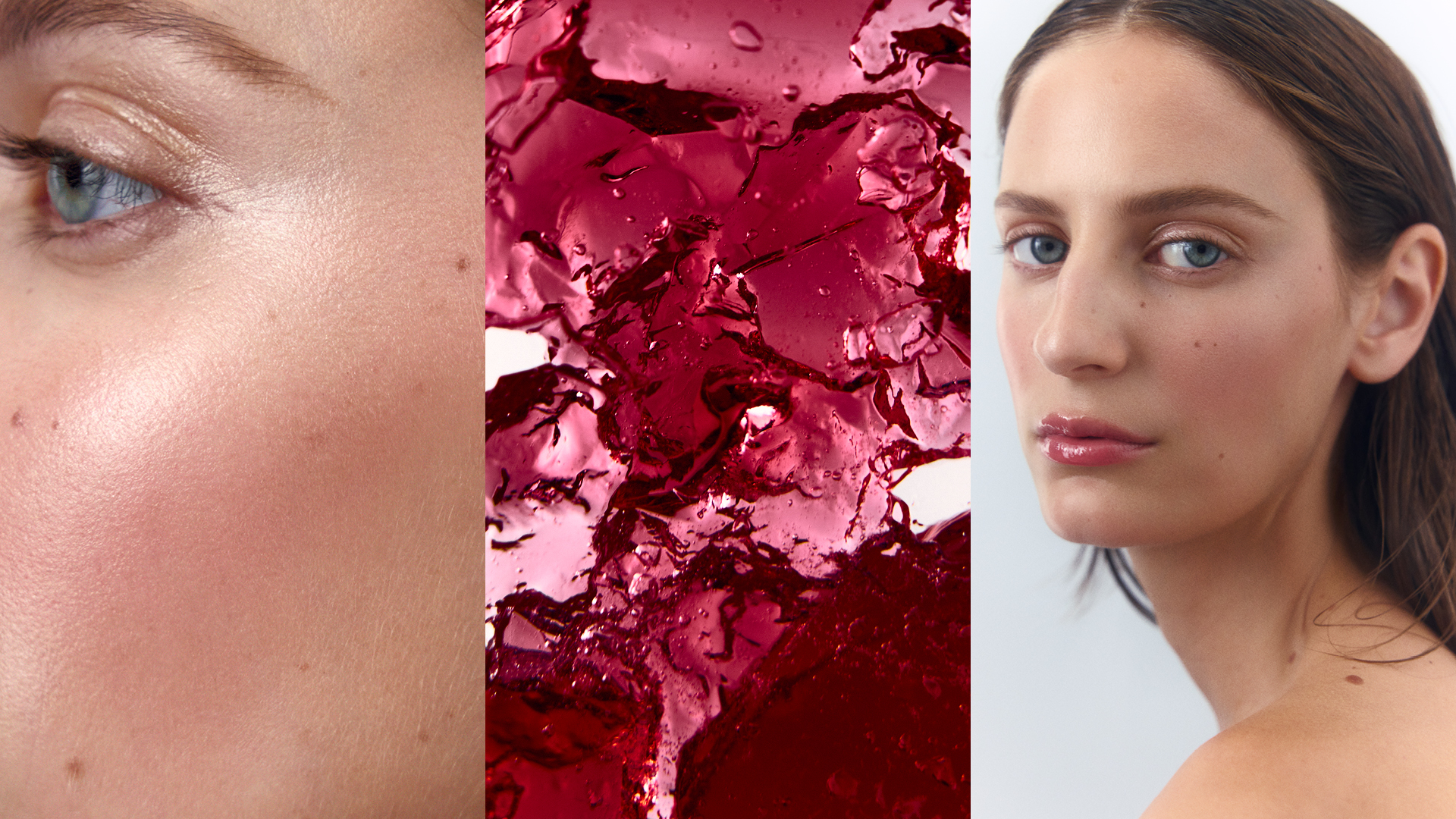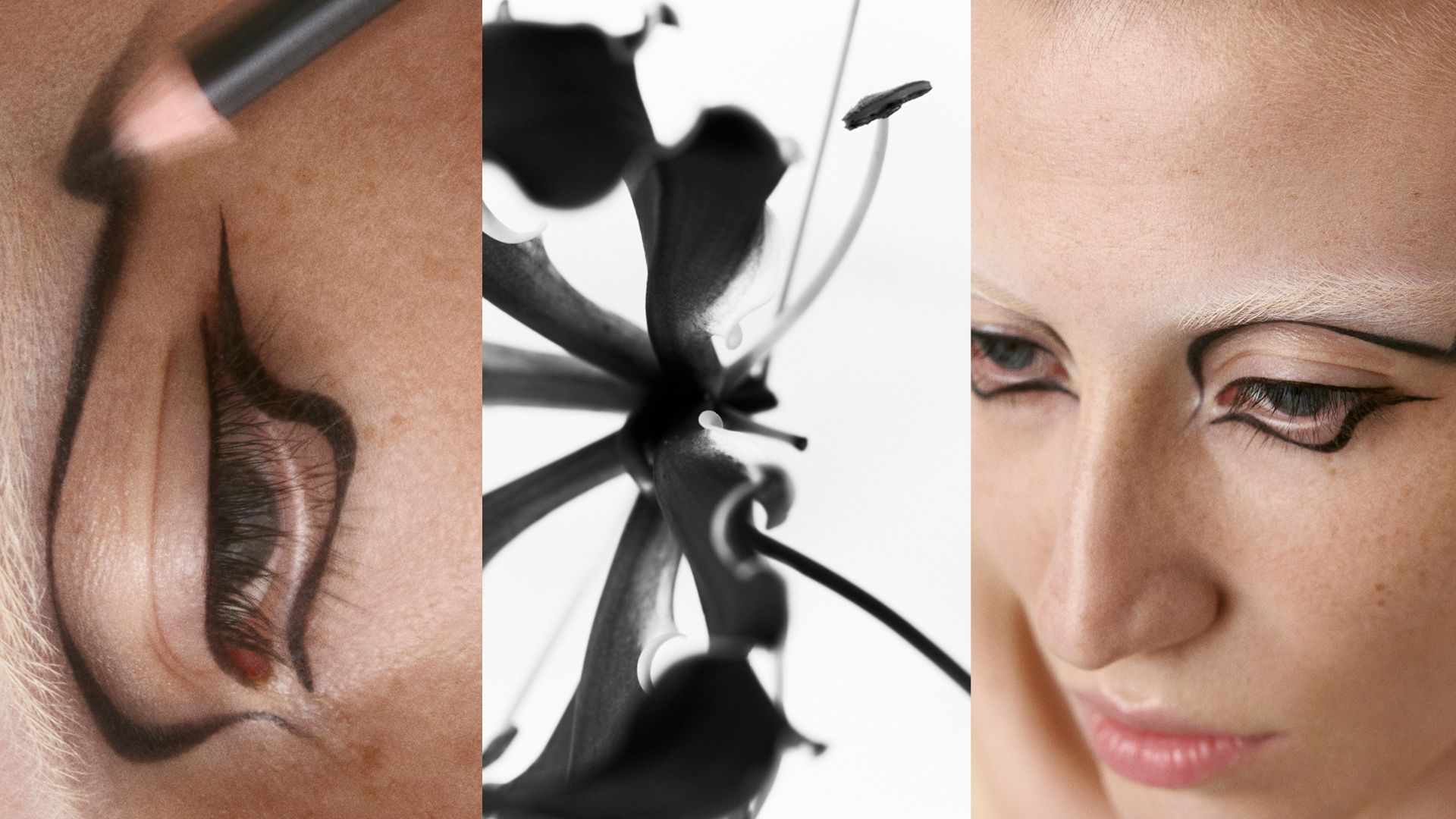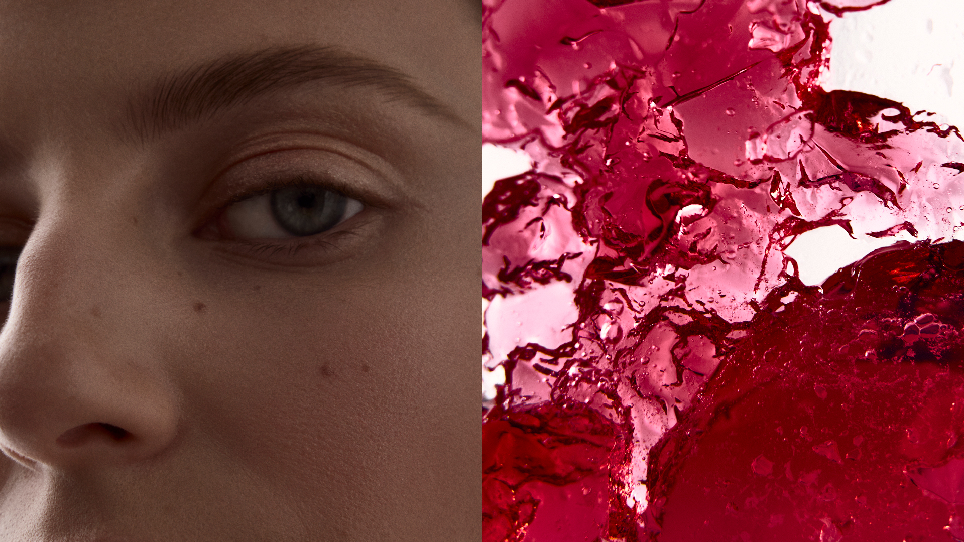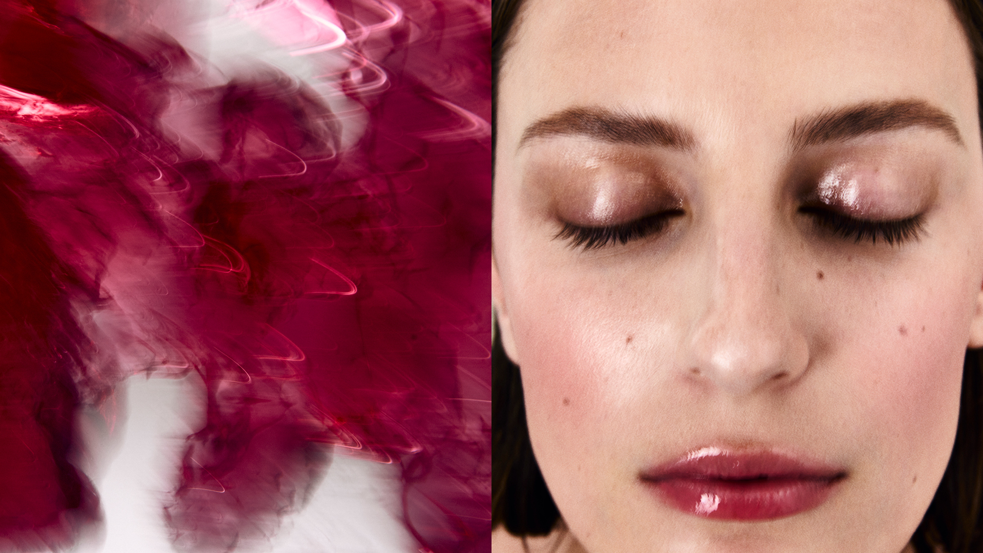 Fragments of gloss and dust. Petals dissolving into skin. A language of surfaces, fractured, fleeting – beauty undone, then reborn.